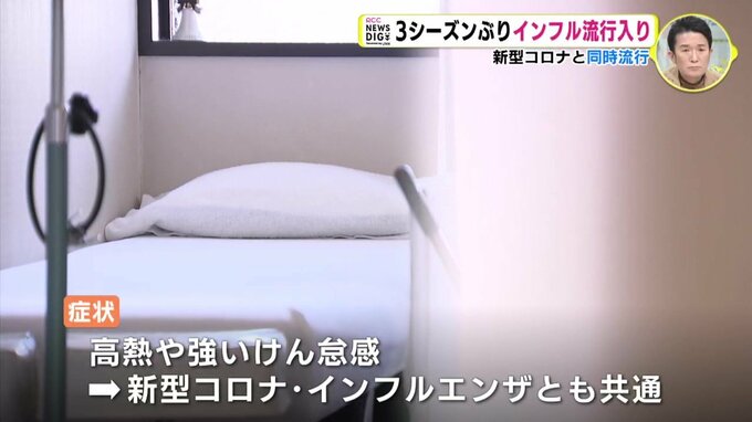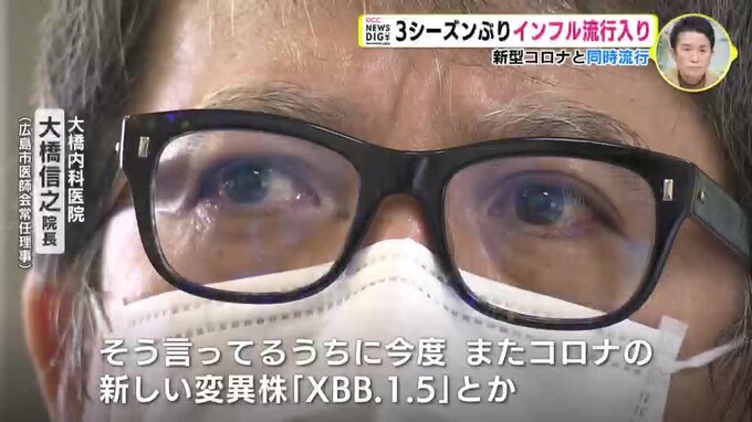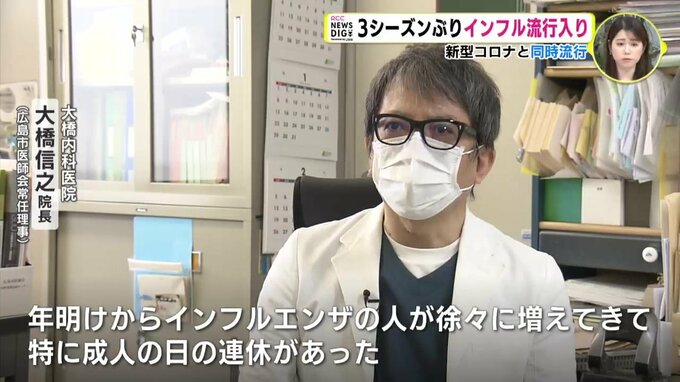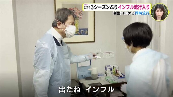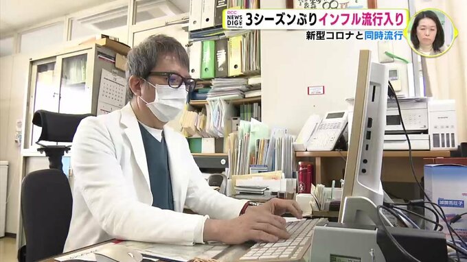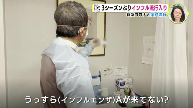 「コロナの変異株のせいなのか、たまたまワクチンの接種の回数の多い人ばかり診ているのか、ちょっとわからないが、熱が出るコロナの人がちょっと減ってきて、それに比べてことしはインフルエンザの人のほうが高熱で、すごく消耗感が強くて、ぐったりしてる人が今、多い印象がある」