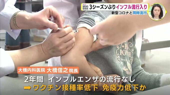 その理由について大橋院長は、この2年間、インフルエンザが流行しなかったことで、ワクチンの接種率が下がり、インフルエンザに対する免疫力が落ちたためではないかとみています。