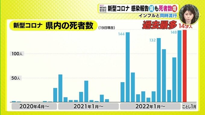 また、死者数が増加していることも気がかりです。新型コロナによる1月の広島県内の死者数は19日の段階ですでに過去最多となり、1日に10人以上の死亡が発表されるのも珍しくない状況です。