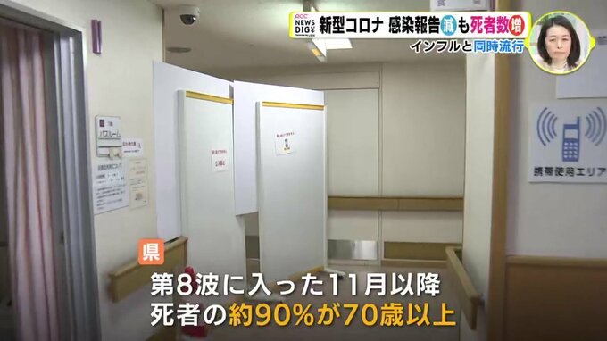 県によりますと、第8波に入った11月以降、死者のおよそ90パーセントが70歳以上だということです。厳しい状況が続く中での同時流行となりました。