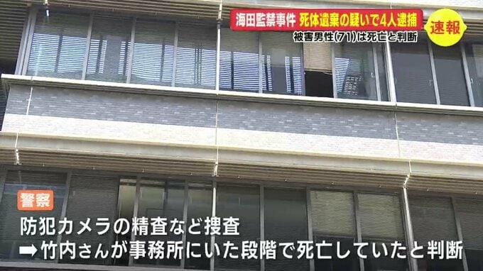 警察は防犯カメラの精査など、捜査をした結果、男性が事務所にいた段階で死亡していたと判断したとしています。