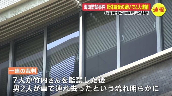 男女7人が監禁罪で逮捕・起訴されましたが、警察はこのうち4人について、男性の遺体を遺棄した疑いが強まったとして、死体遺棄の疑いであらためて逮捕しました。