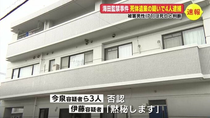調べに対し、今泉容疑者は「知らない」、伊藤容疑者は「黙秘します」、門容疑者は「事実にあるようなことはしていません」、倉本容疑者は「死体は運んでいません」と供述し、いずれも否認か黙秘をしているということです。