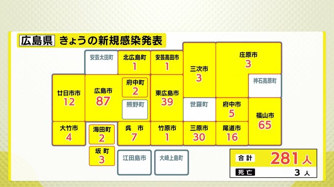広島県内281人感染確認 3人死亡 新型コロナ(13日) 広島市87人、去年1月以来100人下回る 2023年2月13日(月) 15:19 国内 新型コロナウイルス、広島県内の感染状況です。 13日は、広島市で87人、福山市で65人など、県全体で合わせて281人の感染確認が発表されました。広島市の発表が100人を下回るのは去年1月5日以来です。 また、患者3人の死亡が発表されています。