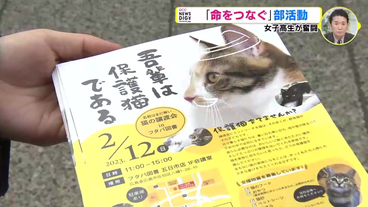 「中でも広島県の課題は、引き取った動物たちの行き先です。例えば2年前の2502頭のうち、殺処分されるのは7%ほど(166頭)でした。7割は、愛護団体への譲渡に頼っているのが現状です。そもそもの引き取り数を減らすことはもちろん、そこから新しい飼い主『個人への譲渡』をいかに増やしていくことができるのか―。広島県内には、高校の部活動として『譲渡会』に取り組む生徒たちがいます」