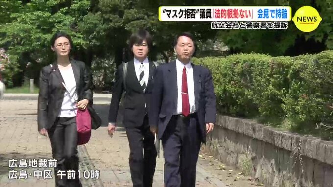 マスクの着用を拒んだため旅客機からおろされ、出発を遅らせた呉市議会議員が、航空会社と警察署を相手取り民事裁判を起こしました。議員は午後、会見を開き、あらためて持論を展開しました。