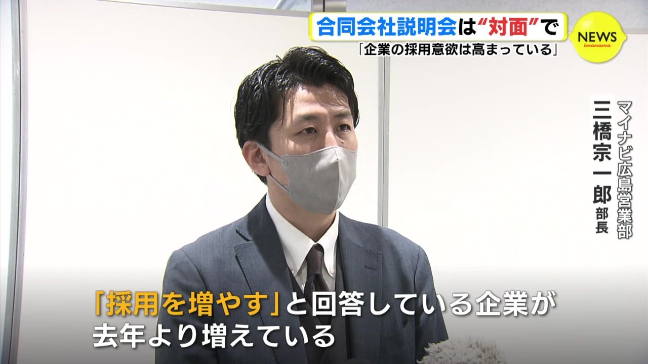 コロナ禍の中、大手就職情報サイト「マイナビ」が主催する合同会社説明会は、去年・おととしは対面に加えてオンラインで行われましたが、ことしは対面のみの実施だということです。