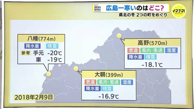 実際に八幡と高野はどっちが寒いのか…。八幡の人たちは、「広島で一番寒いのは『八幡』」と言っていますが、高野の人はどう思っているのか、ドキドキしてきました。