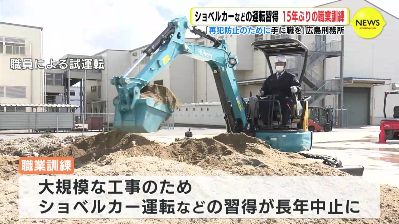 広島刑務所では、施設の大規模な工事のためショベルカーなどの運転技術を習得するような職業訓練は中止されていましたが、このたび、15年ぶりに再開しました。
