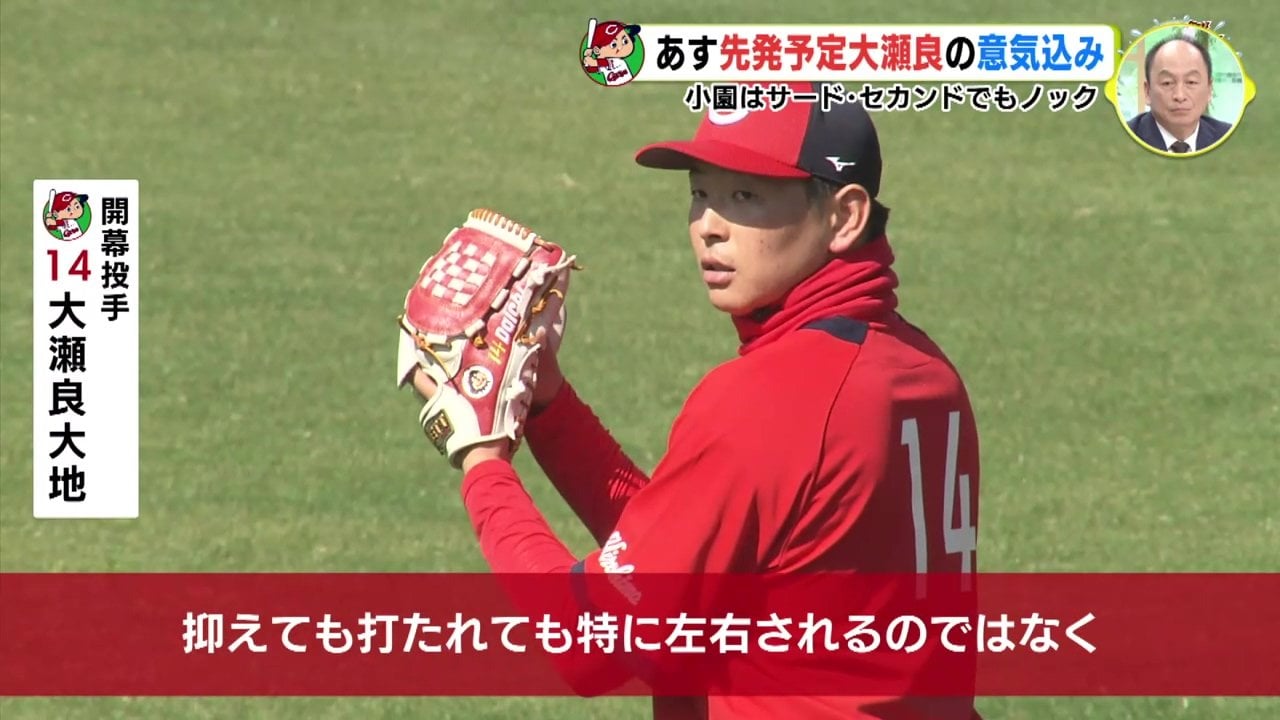 この週末、広島カープは、福岡ソフトバンクホークスとのオープン戦が組まれています。開幕投手に決定し、あす4日の試合で先発予定の 大瀬良大地 に意気込みを聞きました。