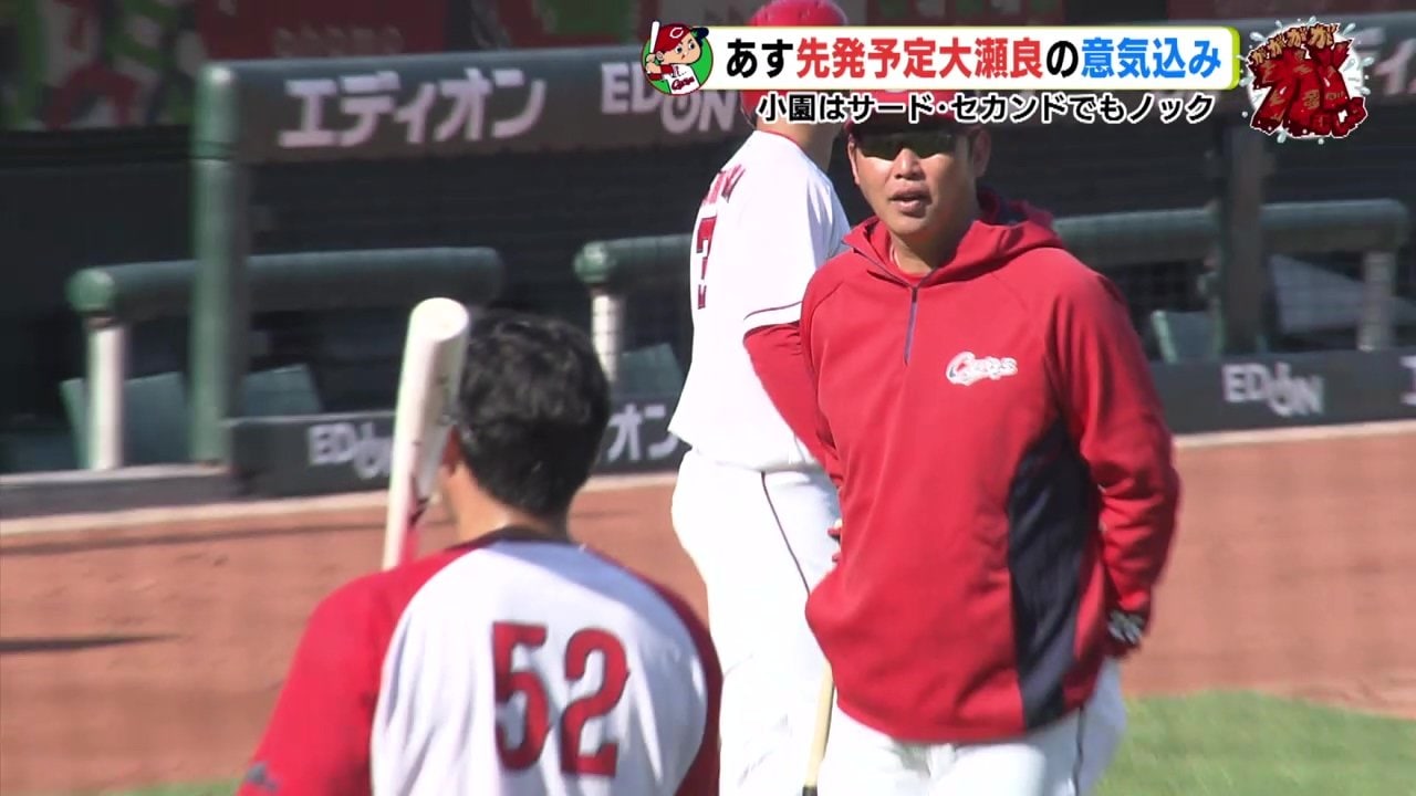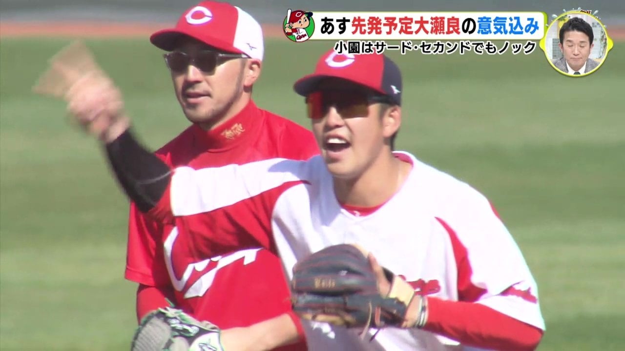 ことしもショートでのレギュラーを誓う5年目の 小園海斗 ですが、キャンプでも練習をしていたサードやセカンドでノックを受ける姿が見られました。