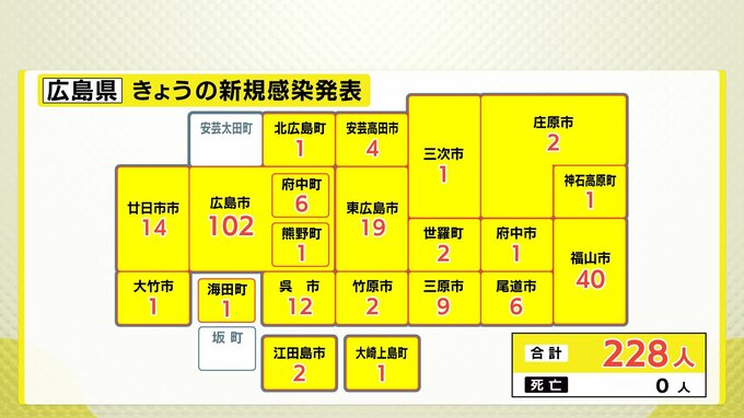 広島県内228人感染確認(5日)新型コロナ感染者数 2023年3月5日(日) 15:44 国内 コロナ 新型コロナウイルス、広島県内の感染状況です。 5日は、広島市で102人、福山市で40人など、県内全体で合わせて228人の感染確認が発表されました。 前の週の同じ曜日より116人少なくなっています。