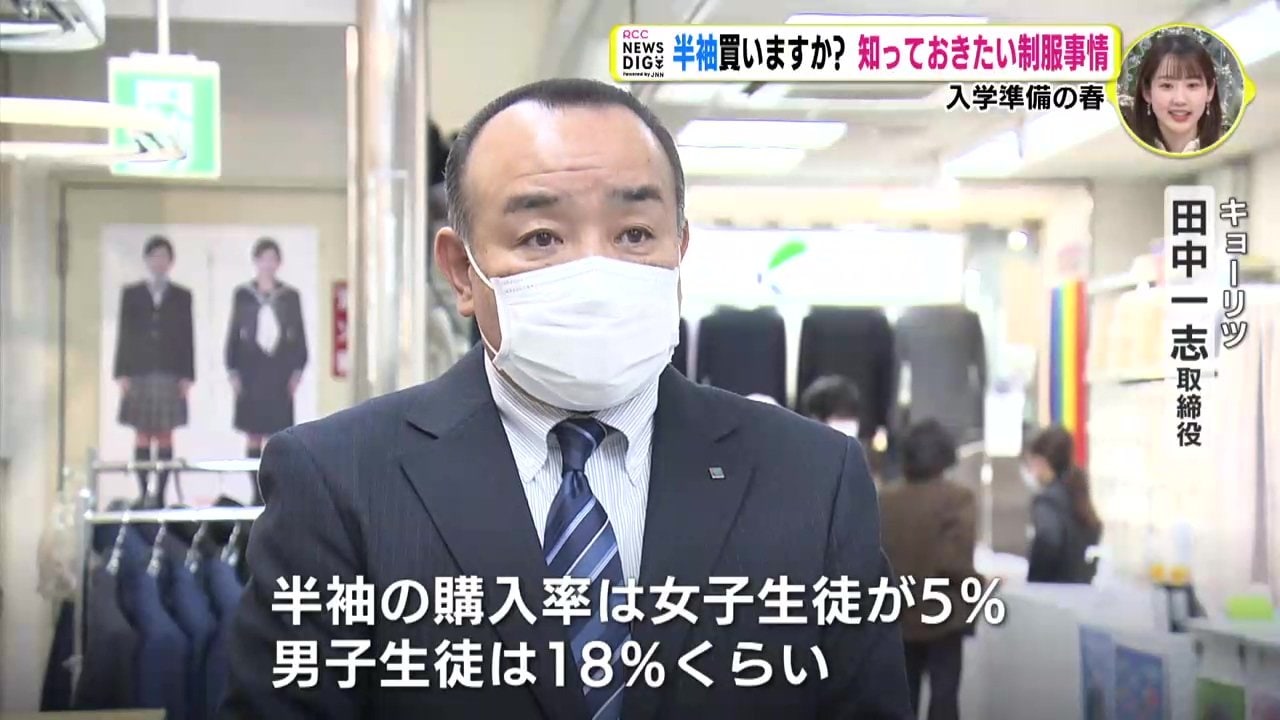 「半袖の購入率は女子生徒が5パーセント、男子だと18パーセントくらい。女子の生徒さんに関しては夏場、日焼け対策ということもあろうかと思います」