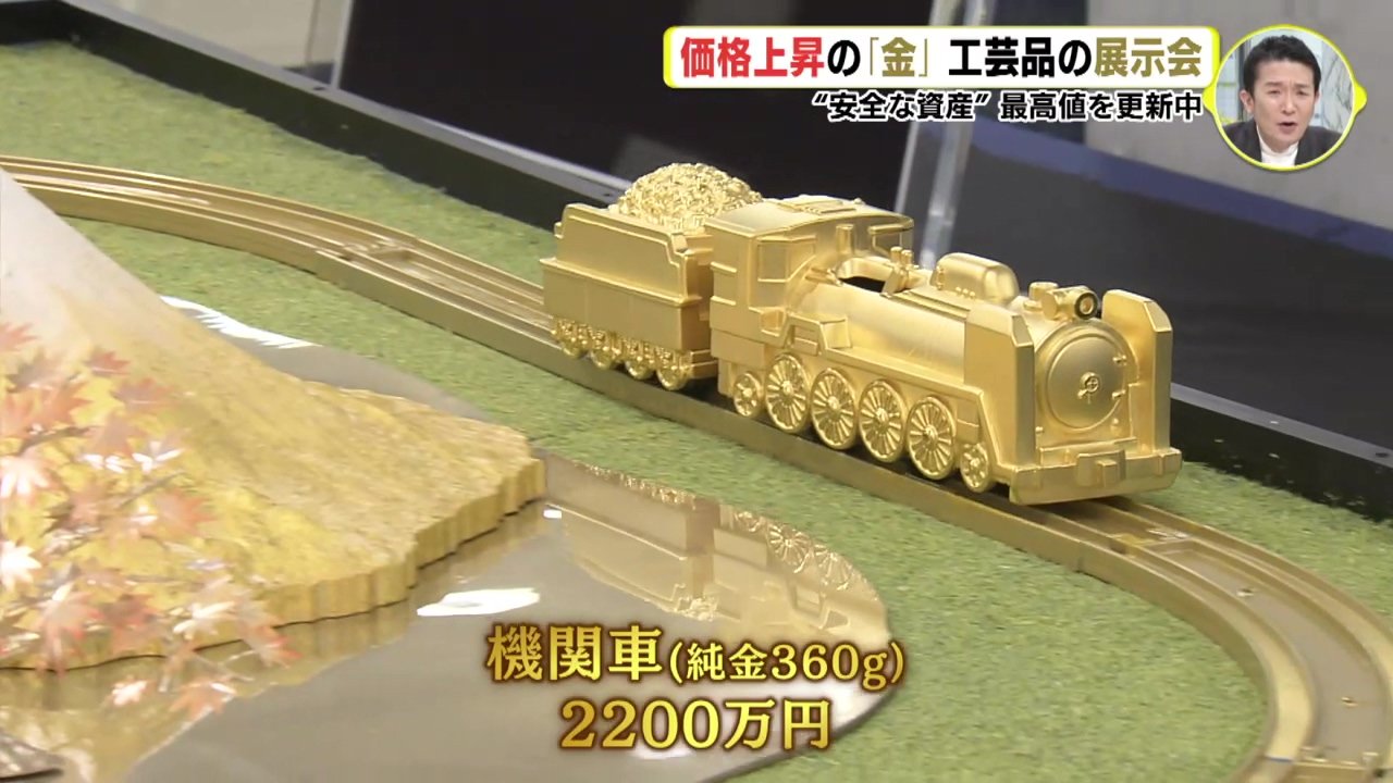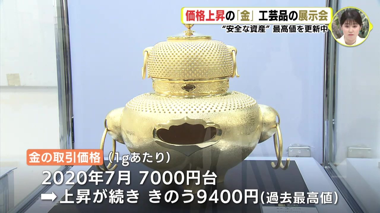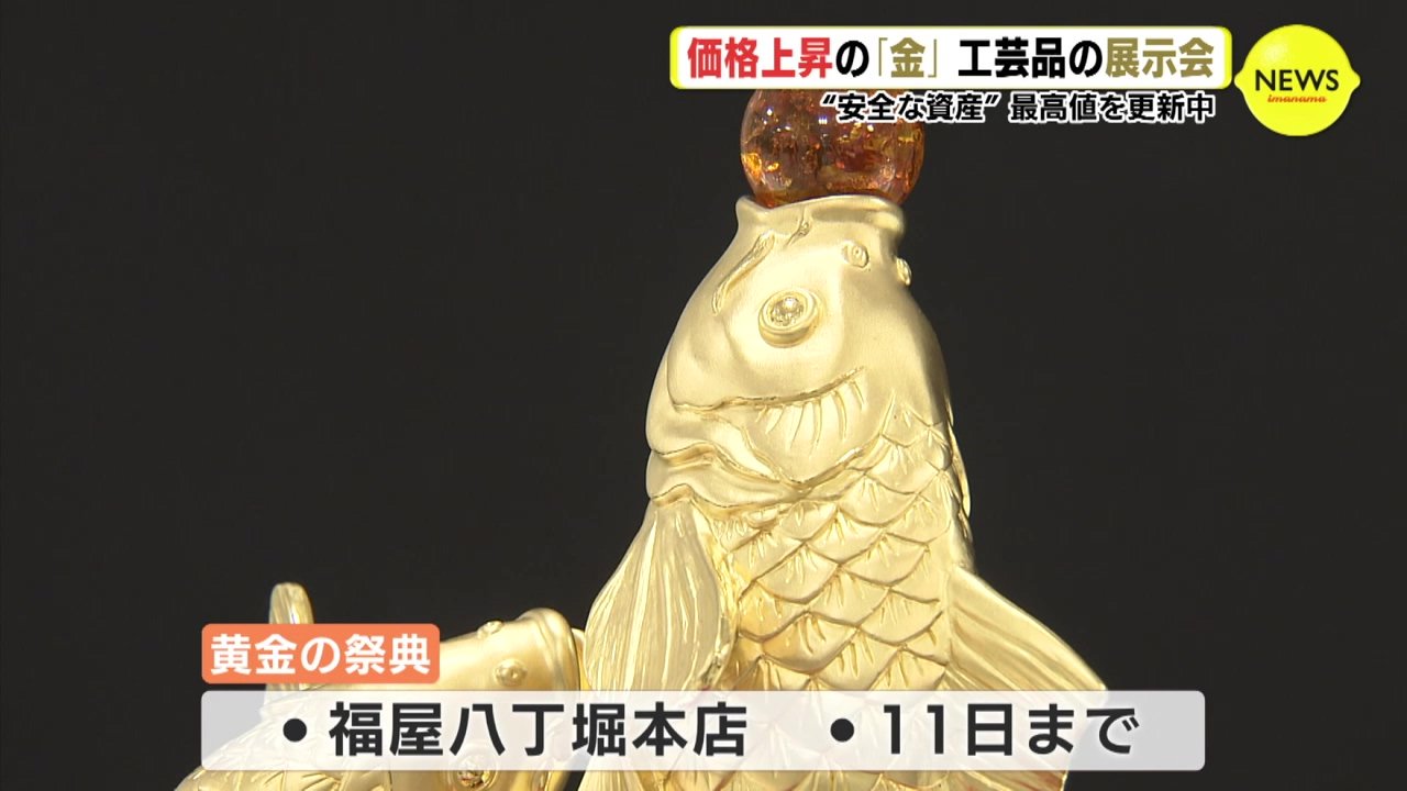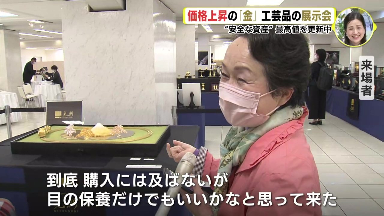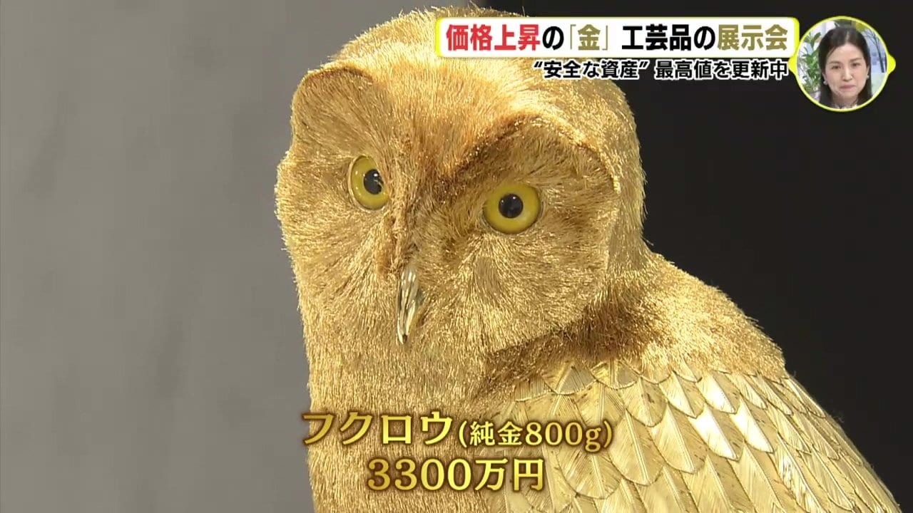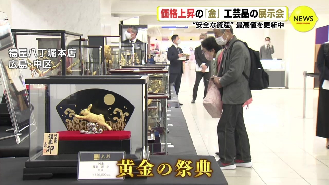 取引価格が上昇を続ける金でつくった工芸品の展示会が6日、広島市のデパートで開催されてます。