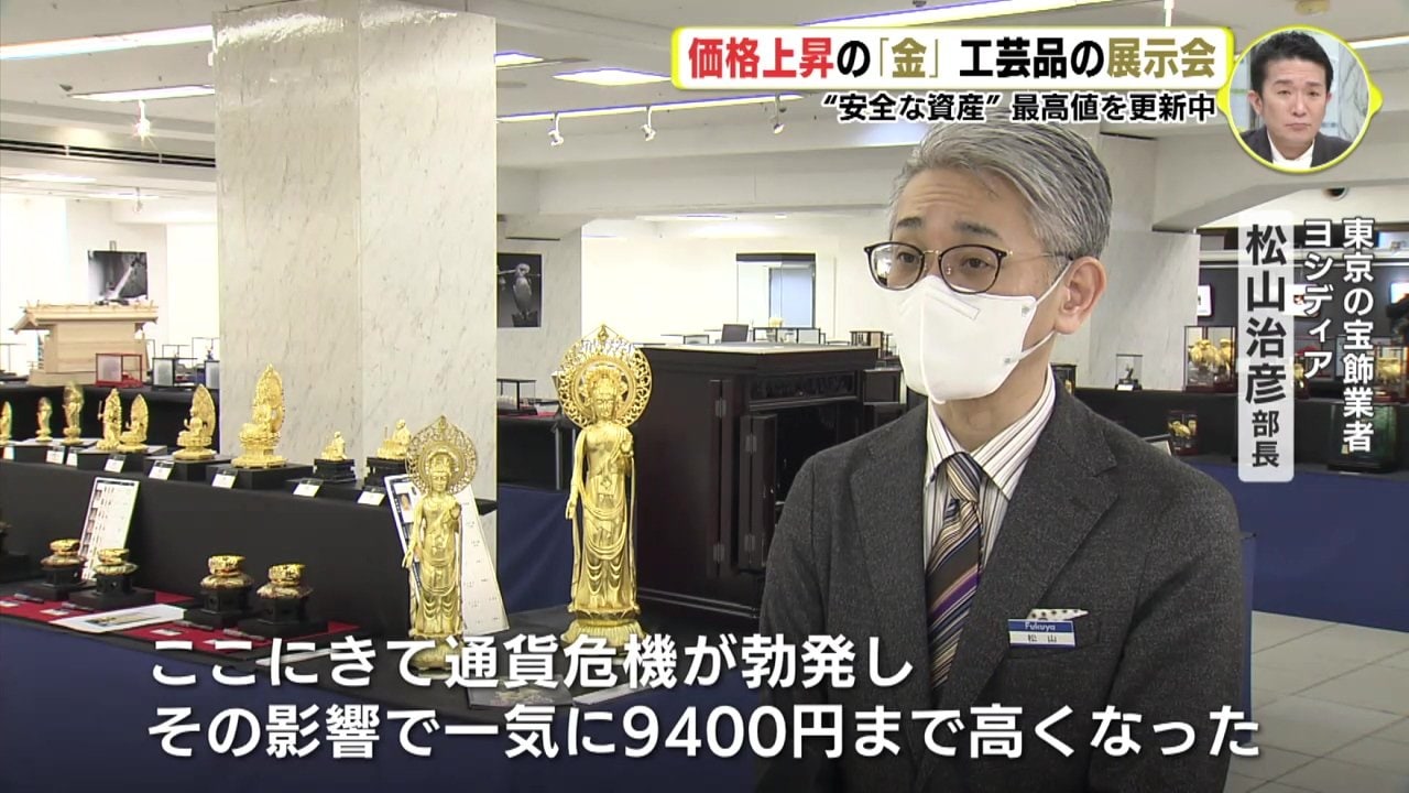 金の取引価格は、3年ほど前は1グラムあたり7000円台でしたが、上昇が続いていて、5日時点で過去最高値の9400円になったということです。要因はコロナ禍やロシアのウクライナ侵攻に加え…