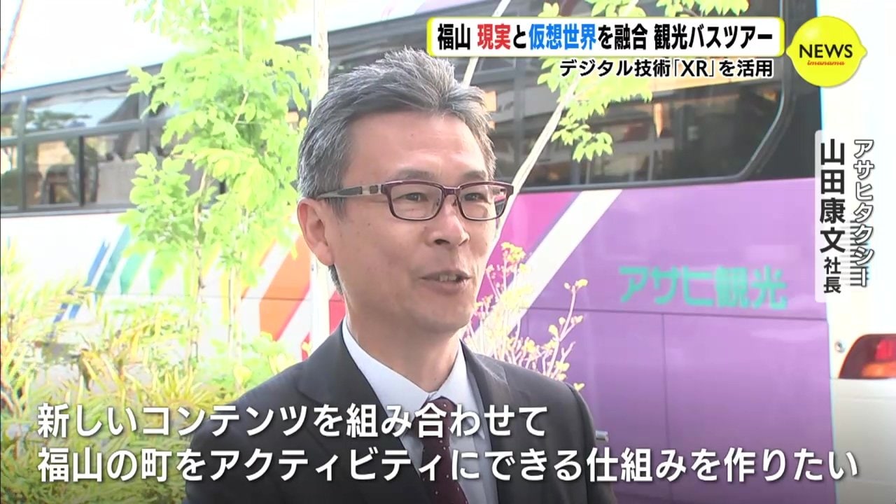 福山市の「アサヒタクシー」が始めたのが、「XR(クロスリアリティー)」を取り入れた観光ツアーです。