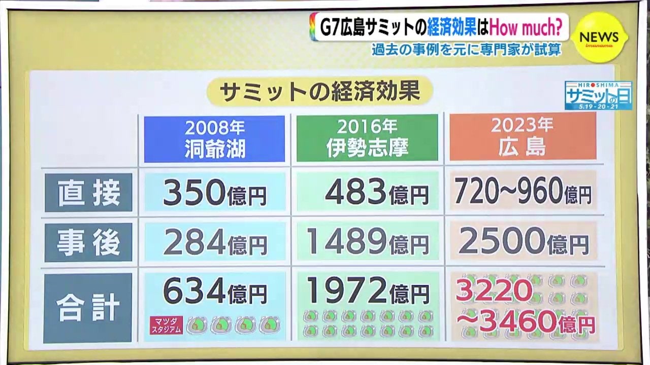 ある大学の准教授によりますと、今回、広島サミットの経済効果は直接的なものだけで720億~960億円、事後を含めると3000億円を超えるというのです。