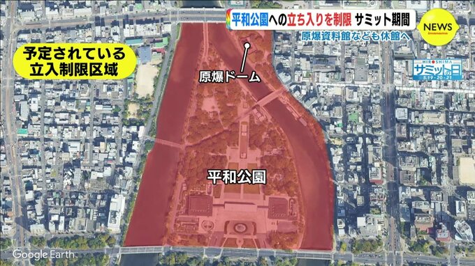 原爆ドームを含む平和公園一帯で立ち入りを制限する
