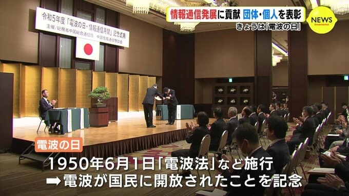 6月1日は「電波の日」 情報通信発展に貢献 団体・個人を表彰 2023年6月1日(木) 16:20 国内 6月1日は「電波の日」です。広島市で記念式典が開かれ、情報通信の発展などに貢献した団体と個人が表彰されました。式典では、中国総合通信局の 和久屋聡 局長が「G7広島サミットで情報通信事業者は情報発信に最大…