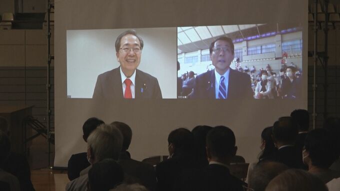 あいさつに立った斉藤国交大臣は、自身を前回選挙から広島3区の与党統一候補だと紹介。「自民党広島県連会長の平口さんは、わたしの親分」だと表現して親密ぶりをアピールしました。
