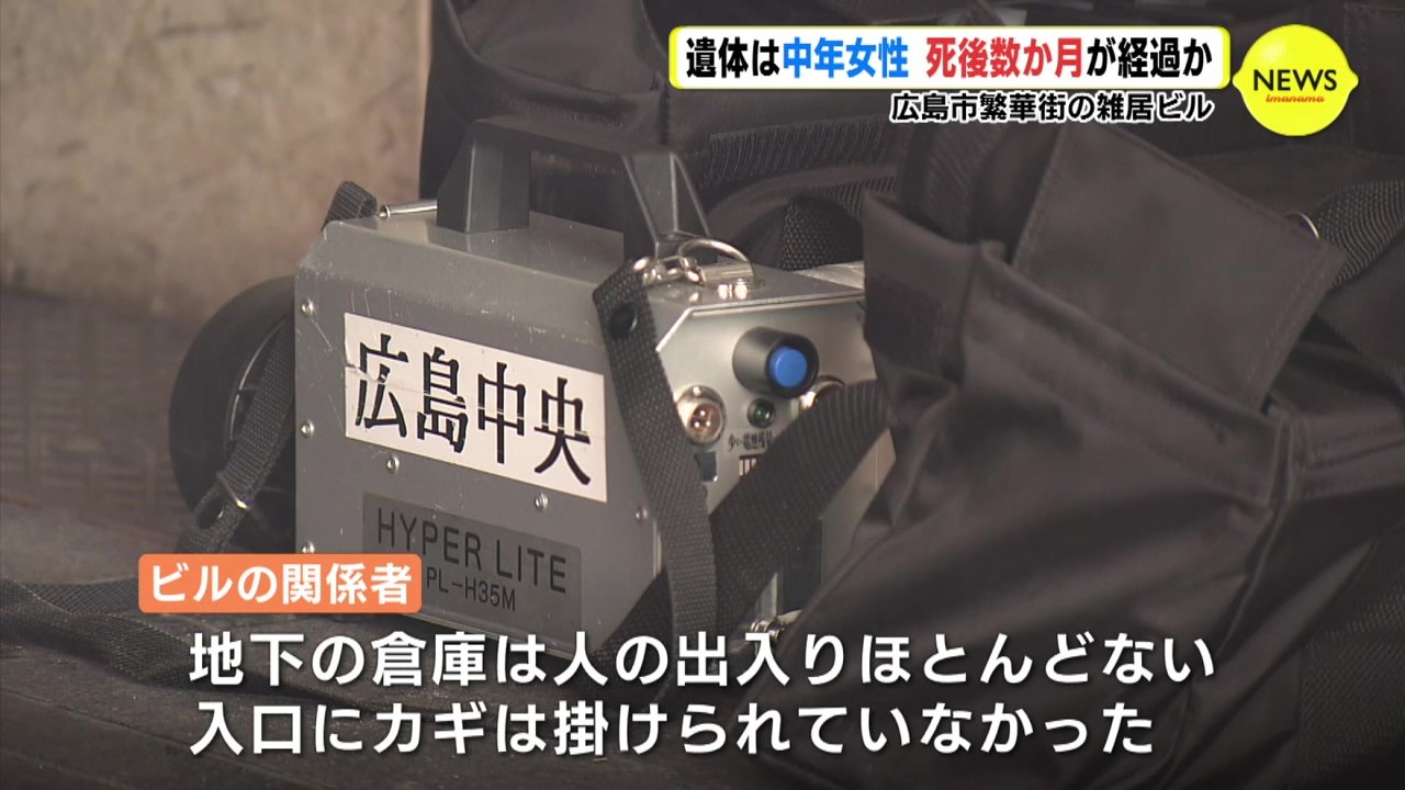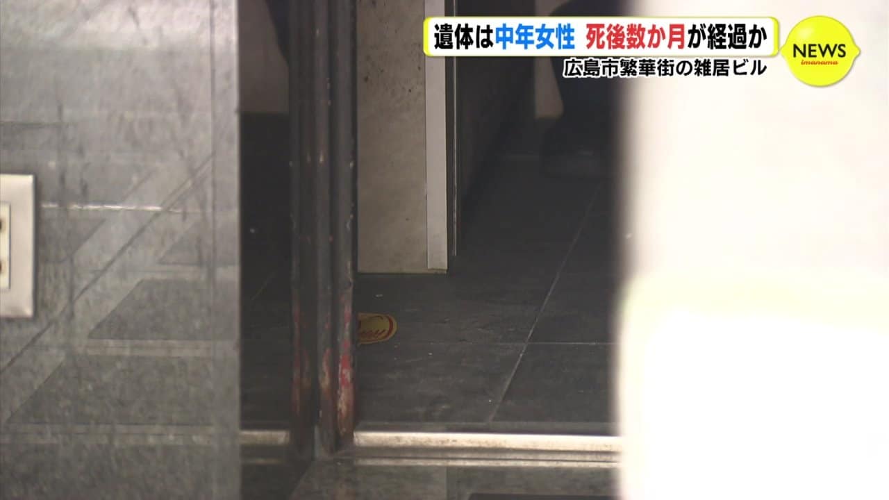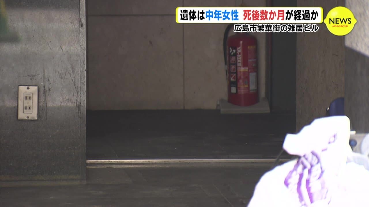 18日未明、広島市の繁華街にある雑居ビルで見つかった遺体は、女性で、死後数か月が経過しているとみられていて、警察が身元や死因などを調べています。