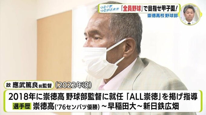現役引退後は、社会人野球や早稲田大学で監督を務め、2018年に母校の監督に就任。チーム全員で戦う「ALL崇徳」精神で甲子園を目指しましたが、去年、道半ばで亡くなられました。
