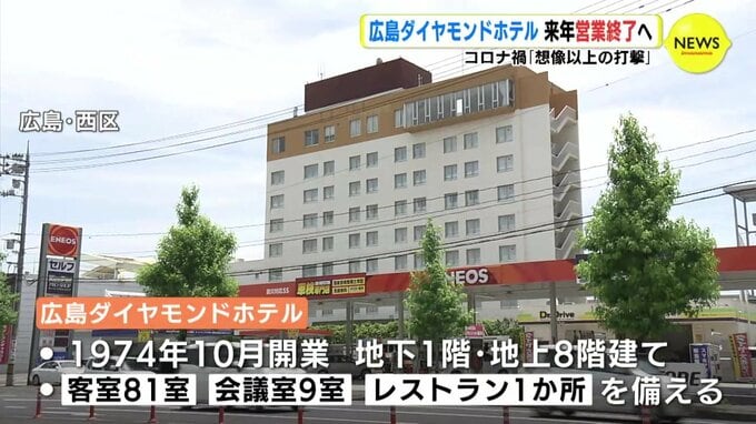 「コロナ禍 想像以上の打撃」広島ダイヤモンドホテル 来年 営業終了へ 2023年7月4日(火) 18:59 国内 暮らし・マネー 広島市にある広島ダイヤモンドホテルは、来年6月末で営業を終了することを明らかにしました。広島ダイヤモンドホテルは、1974年10月に開業しました。地下1階・地上8階建てで客室数は81室。9つの会議室とレストラン…
