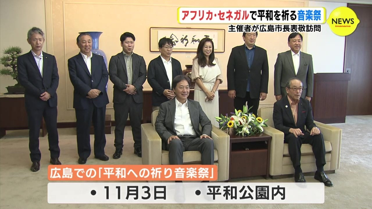 来年、アフリカのセネガルで平和を祈る音楽祭を開催する主催者らが11日、広島市の松井市長を表敬訪問しました。