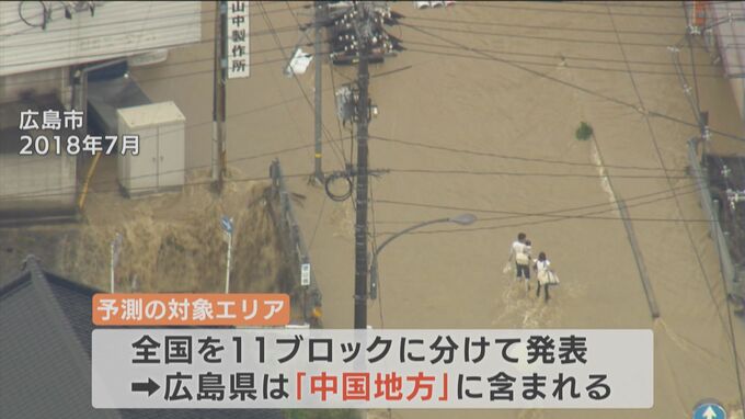 ただ、この予測情報を扱う上で注意が必要なのが「予測の精度」です。予測の発表は、全国を11のブロックに分けたエリアが対象で、広島県は「中国地方」に含まれますが、これは、現状では、県単位で細かく予測できるほどの精度がないためです。