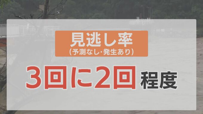 気象庁によると、予測を発表して実際に線状降水帯が発生する「的中率」は、4回に1回程度しかありません。また、予想が発表ができないまま、実際に発生してしまう「見逃し」の割合は3回に2回程度あるとしています。