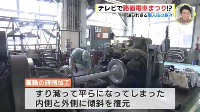 部品の加工も車庫内で行います。この日の作業は、車輪の研削加工。26種の車体ごとに必要な作業が異なり、そこにやりがいがあるそうです。