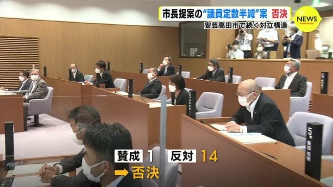 賛成1人、反対14人。石丸市長の議員定数半減案は、否決とされました。