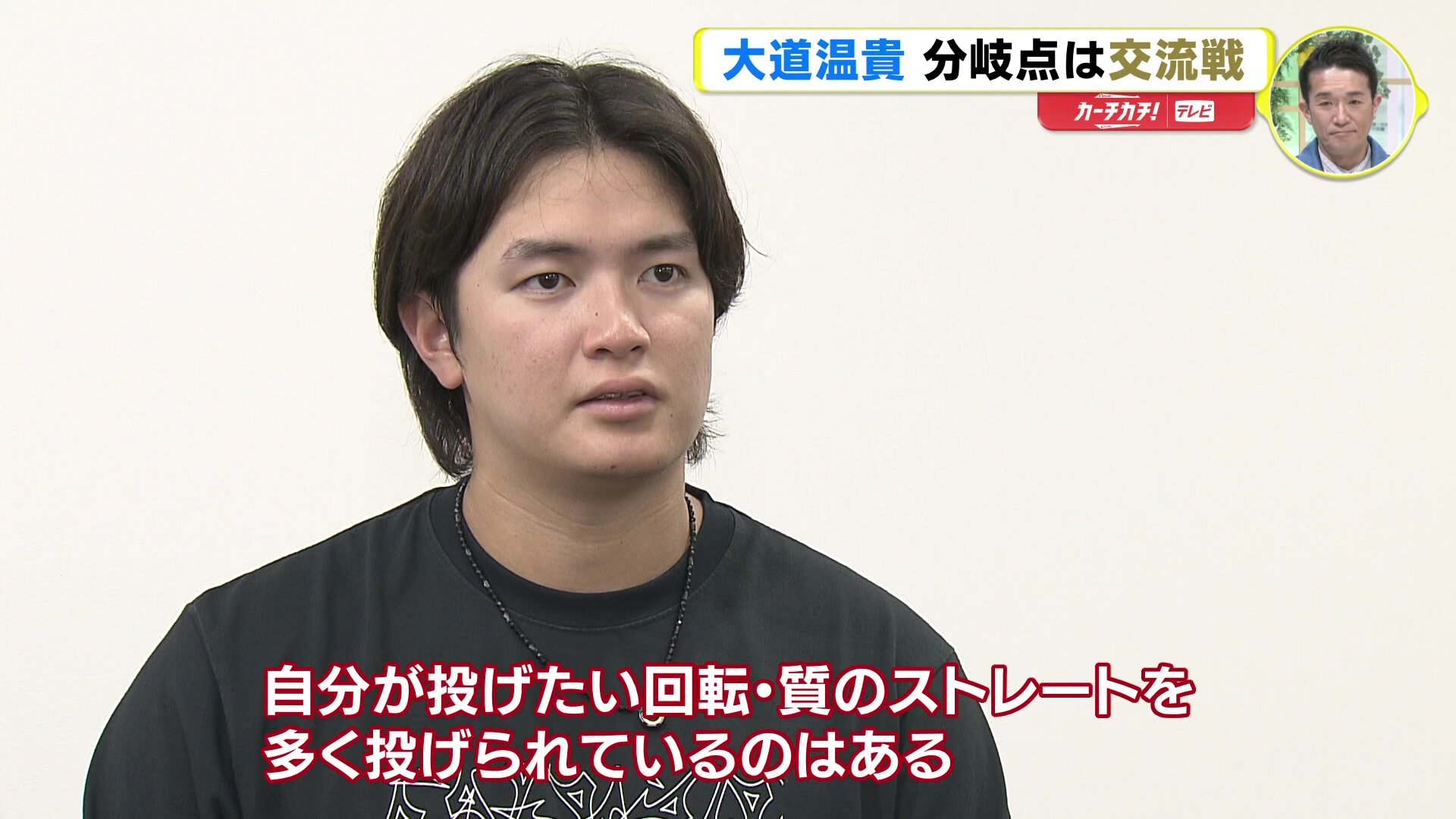 「交流戦で特にワンポイントで行く場面がかなり多かったとは思うんですけど、そこで、ぼくの場合、まっすぐ(ストレート)とカット(ボール)で勝負していく中でけっこういいところにカットボールが決まっていたんですけど、なんか全然、(バッターの)反応が悪くて、そのときは意識して投げていないんですけど、縦に落ちたカットがかなり反応がよくて…」
