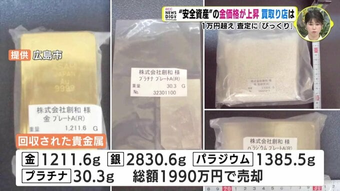 広島市は、昨年度からこういった希少な金属を回収して収益化する取り組みを始めました。最初の9か月間で回収された金はおよそ1.2キロ…。そのほかの金属も合わせた売却額の合計は1990万円にも上りました。