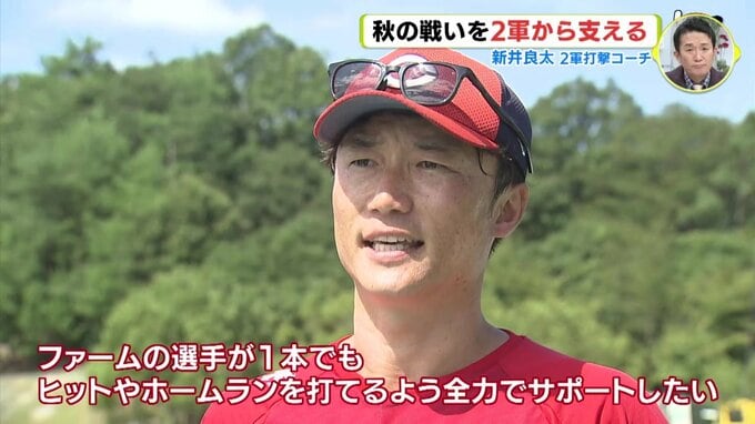 「やっぱり、すごいなと思います。なかなかうまくいかないこいとの方が多いし、表情とかにも出ると思うんですが、一切、出ないですし。1番になって選手を守ってくれる。それが甘さでなく、優しさというのがすごく伝わるなと思います。今、ファームにいる選手が1軍に上がって、1本でも多くヒットやホームランを打てるよう全力でサポートするだけなので。そこだけ考えて、あと20試合ないですけども、まだまだチャンスはあるとお尻をたたきながらサポートしていきたいと思います」