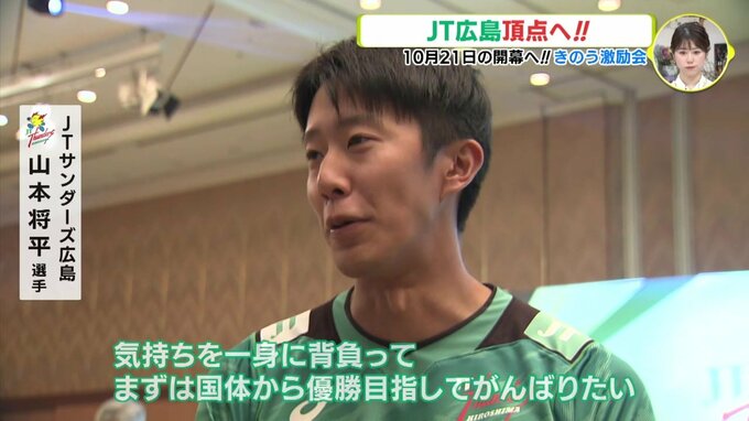 「広島のみなさんがJTサンダーズ広島を応援してくれていると実感した。気持ちを一身に背負って、まずは国体から優勝目指してがんばりたい」