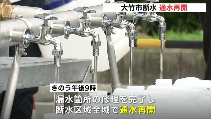 大竹市で1日未明に発生した大規模な断水は夜、復旧作業が完了し、通水が再開されました。