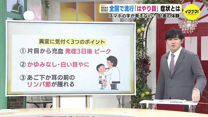 「わたしも全部当てはまりました。▽片目から充血します。3日後、ウイルス増殖がピークを迎えて、反対側の目にうつりました。涙でうつるそうです。▽目はかゆくありません。感染症なので、白い目ヤニが出てきます。▽アデノウイルスは、リンパ節をつたって、あごの下・耳の前にうつります。症状が出たら、はれます。わたしも左側がはれましたが、おかしいなと思ったら眼科を受診してください」