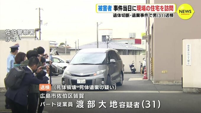 死体損壊などの容疑で送検されたのは、広島市佐伯区皆賀の渡部大地 容疑者(31)です。