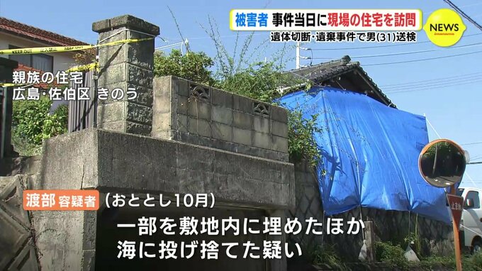 警察によりますと渡部容疑者はおととし10月、佐伯区の親族の住宅で、刃物などを使って知人の植木秀俊さん(当時70)の遺体を切断し、一部を敷地内に埋めたほか、海に投げ捨てた疑いがもたれています。