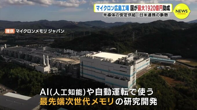 東広島市に拠点を置くアメリカの半導体大手マイクロン・テクノロジーの日本法人に対し、経済産業省は最大1920億円を助成すると発表しました。
