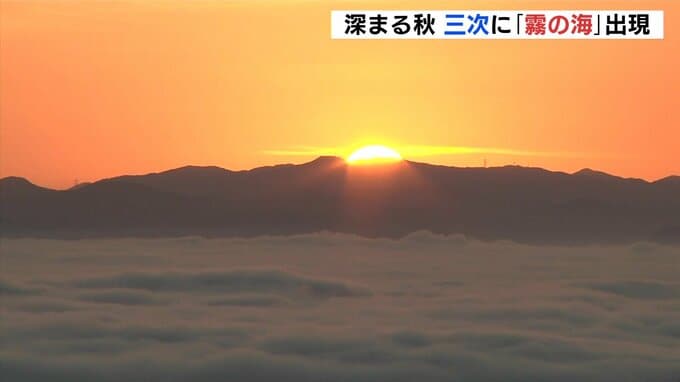 広島県の北部では12日朝、この秋一番の冷え込みとなったところがあり、三次市では、壮大な「霧の海」が広がりました。