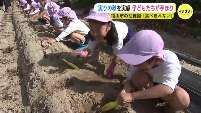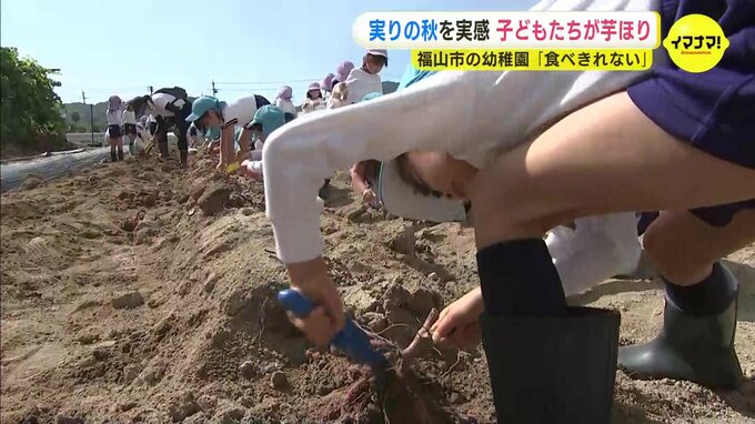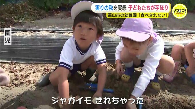 広島県福山市の幼稚園で、子どもたちがイモ掘りをしました。