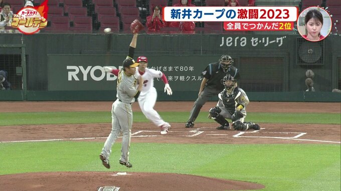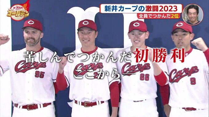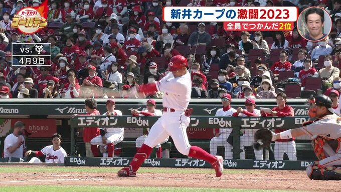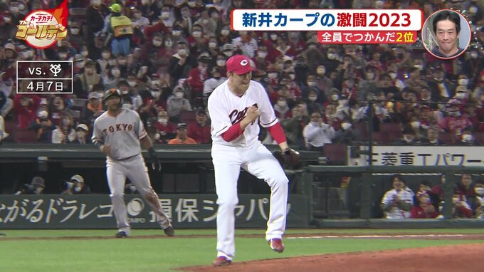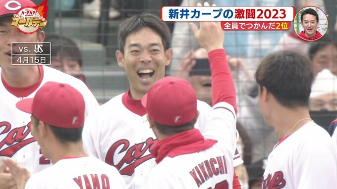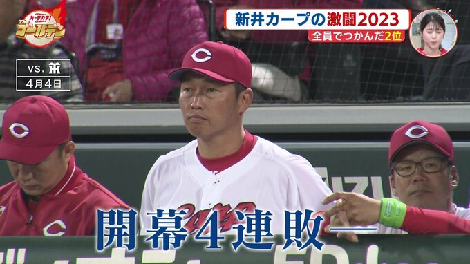 「(遠藤淳志が)第3球を投げました。新井貴浩 監督、2023年4月6日、開幕5戦目にしてようやくつかんだ初勝利」