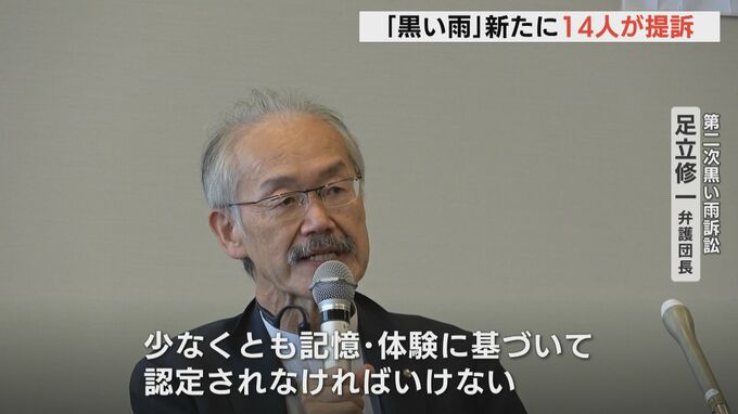 新たに訴えを起こしたのは、現在の廿日市市津田などで黒い雨を浴びたという79歳~100歳の14人です。このうち12人は、「その地域に黒い雨が降ったことが確認できない」という理由で被爆者手帳と健康管理手当の申請を却下されています。