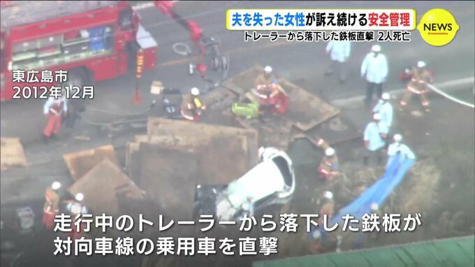10年前、走行中のトレーラーから落下した鉄板が乗用車に直撃し、2人が亡くなりました。夫を失った女性が、車を使う事業者に安全管理の大切さを訴えました。
