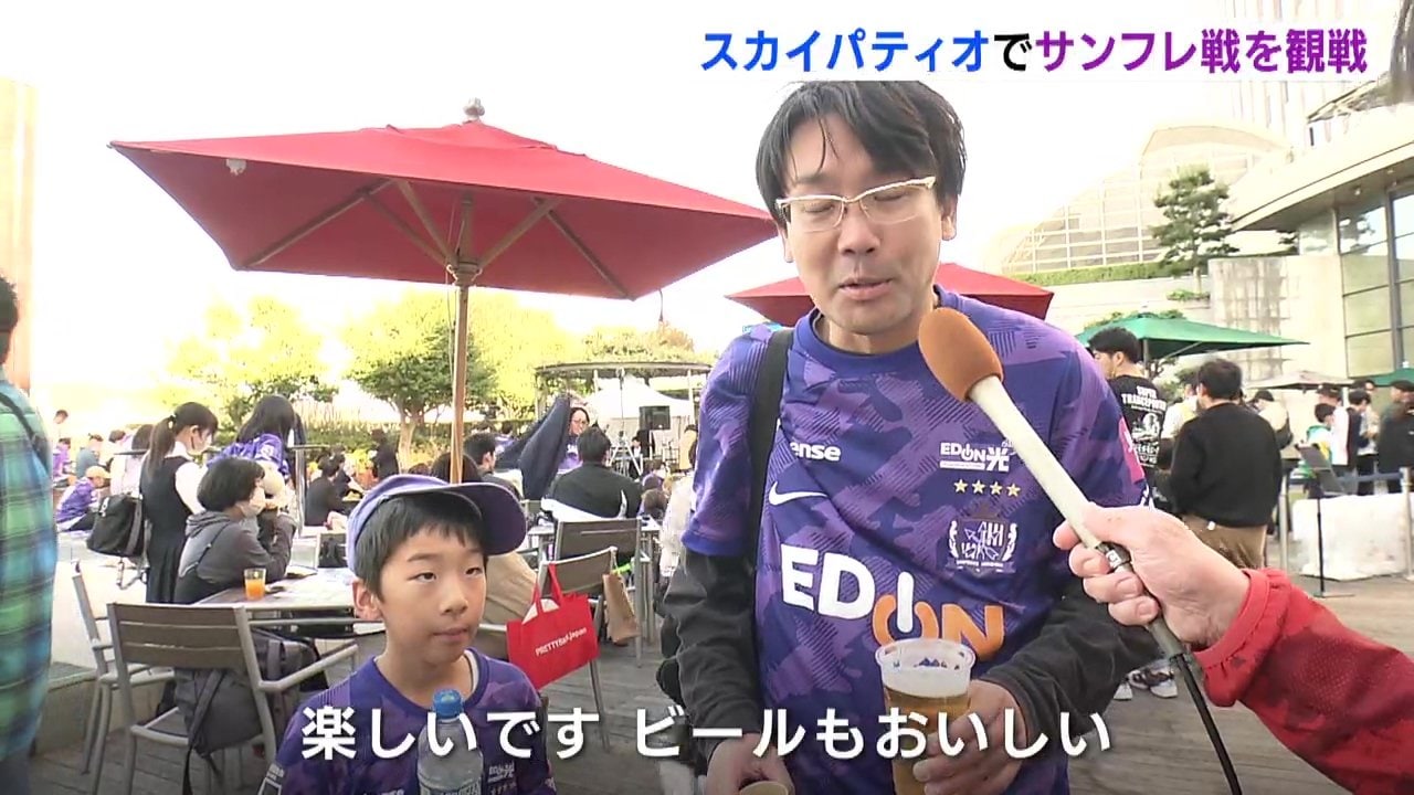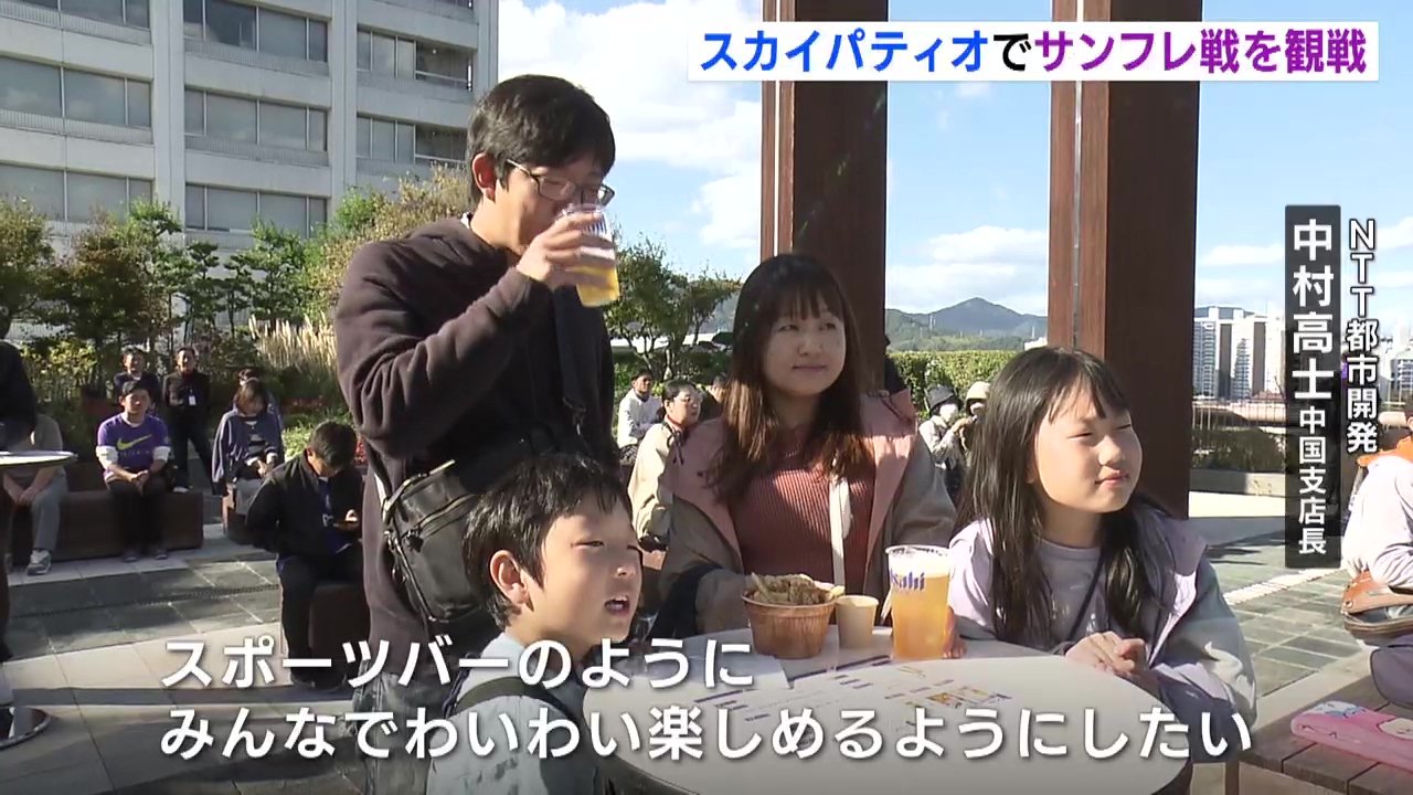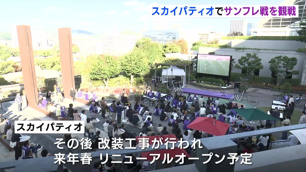広島市の商業施設「パセーラ」の屋上庭園に大型モニターが設置され28日、サンフレッチェ広島のパブリックビューイングが行われました。