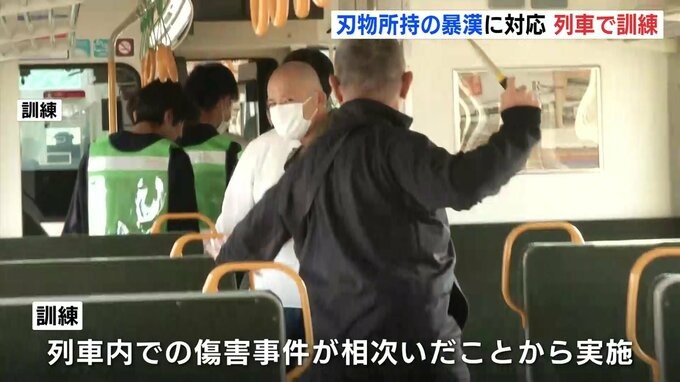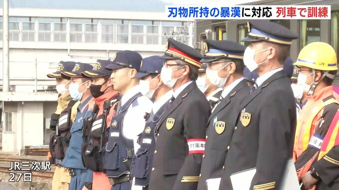 列車内での傷害事件が相次いだことを受けて、刃物を持った暴漢に対応する訓練が、広島県のJR三次駅でありました。