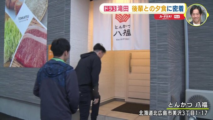 やってきたのは、野球場から車で5分のところにある「とんかつ八福」です。ドラフト会議の前日にも滝田投手が訪れたという、行きつけの店です。