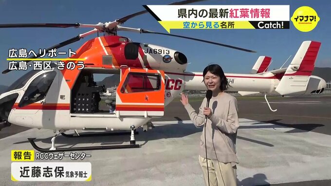 「紅葉シーズン到来です。広島県内最新の紅葉情報をヘリコプターに乗って空からお伝えします」
